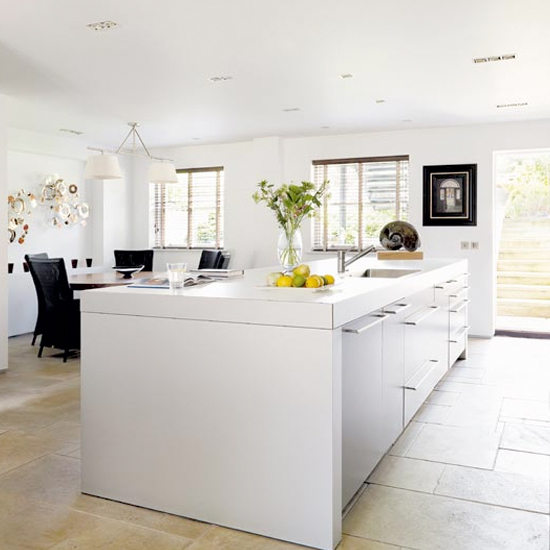 Open-plan kitchen-diner with an adjoining living area. the look Bright, open, streamlined flooring for the kitchen which echoes the unpolished concrete of the patio outside Kitchen ideas Outdoor feel ... Access Doc